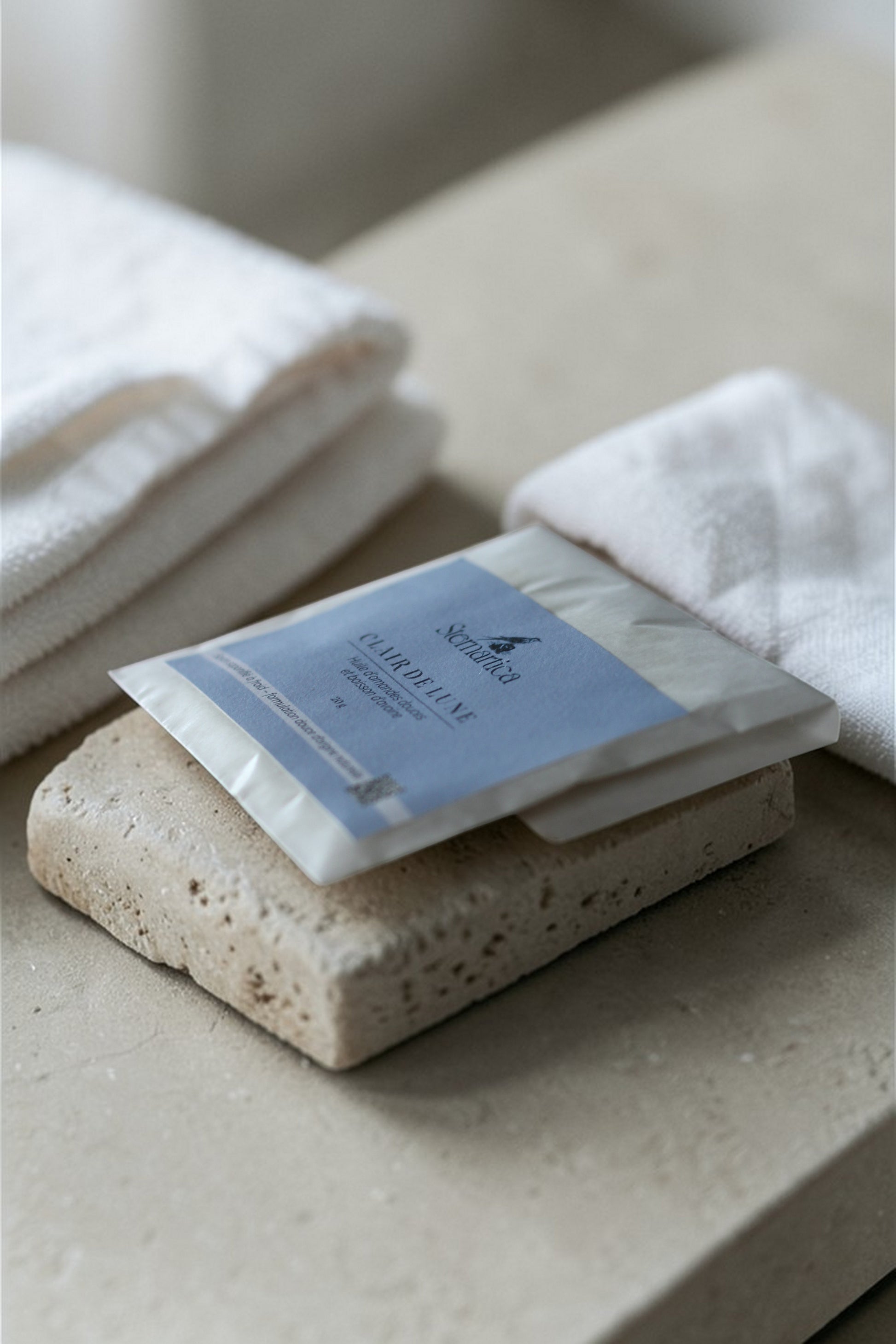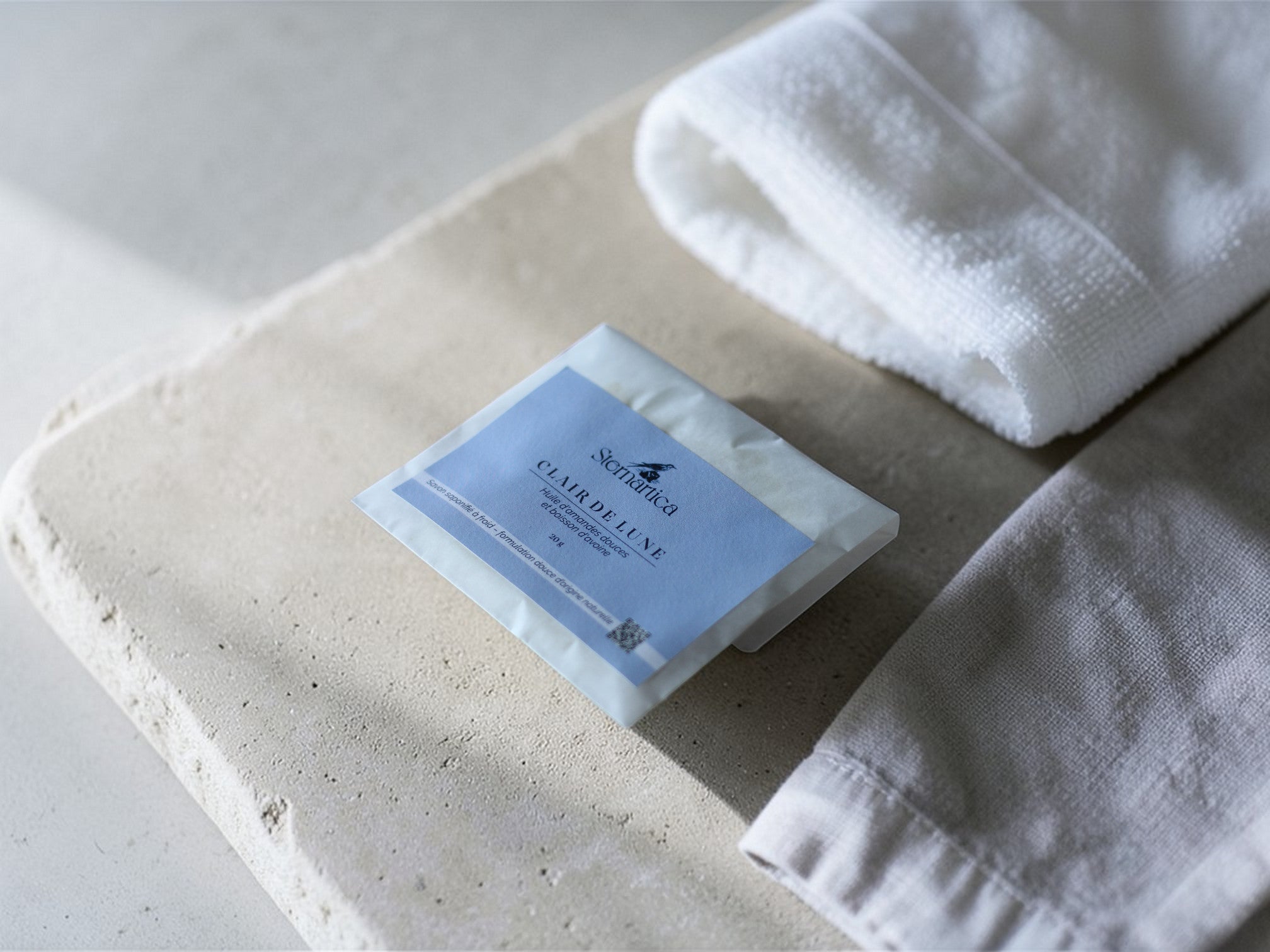 Ce savon artisanal constitue une alternative naturelle aux produits d’accueil standardisés et plastifiés, tout en conservant l’emballage individuel pour l’hygiène.